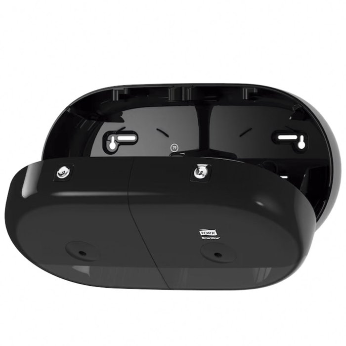 Tork SmartOne® Twin mini zásobník na toaletný papier v dizajne Elevation je moderný a efektívny systém zásobníkov vhodný pre náročné toalety a umyvárne s vysokou návštevnosťou. Tým, že sa doň zmestia dva kotúče, a dávkovaním po útržkoch, pomáha znižovať spotrebu až o 40 % v porovnaní s tradičnými jumbo kotúčovými zásobníkmi, čo znamená viac návštev na jeden kotúč. Zásobníky Tork Elevation majú praktický a moderný dizajn, ktorý zanecháva v hosťoch dlhodobý dojem.