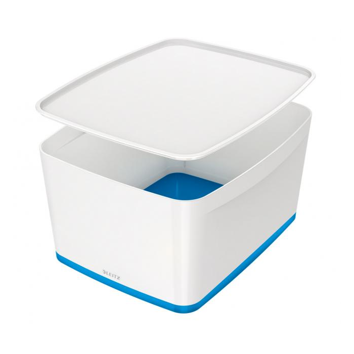 Výnimočne pevný box s vekom z modulárneho systému Leitz MyBox® z kvalitného materiálu. Dvojfarebné prevedenie a lesklý povrch vytvárajú unikátny dojem. Je určený na rýchle uskladnenie dokumentov a ďalších predmetov. Odolný voči poškriabaniu a vodotesný, s guľatými rohmi pre jednoduché čistenie. Nenápadný okraj drží veko v zavretej pozícii a pritom sa ľahko otvára. Pri nepoužívaní je možné viaceré boxy stohovať na seba a šetriť tak miesto. Box dobre dopĺňa ostatné produkty najmä dvojfarebného radu WOW.Rozmery 318 × 385 × 198 mm. Objem 18 litrov.