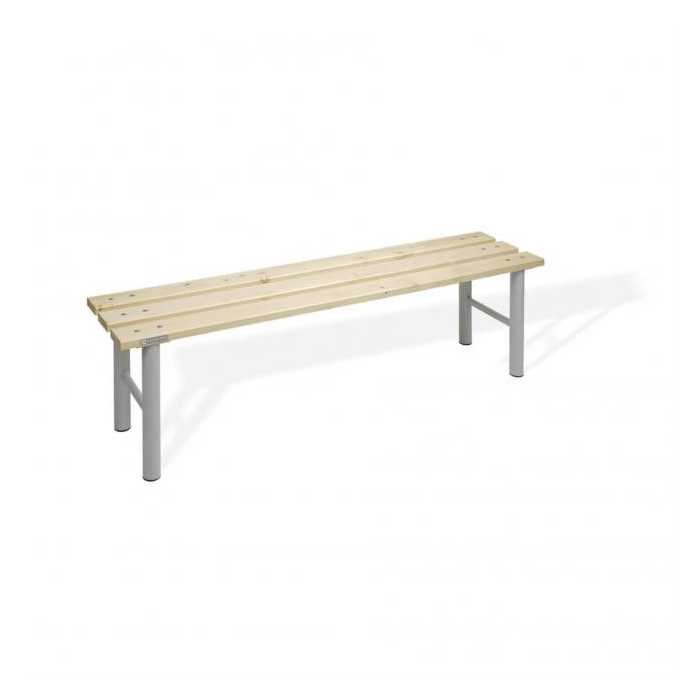 Univerzálne lavice do šatní. Kvalitné smrekové drevo bez hrčí. Pevná kovová kostra. Farba: svetlosivá RAL 7035.