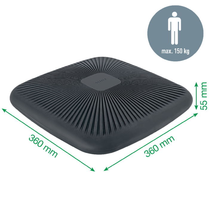 Tento štýlový nafukovací ortopedický sedák s minimalistickým dizajnom je určený na použitie na akejkoľvek stoličke a pomáha posilňovať chrbát. Štvorhranný dizajn zaisťuje správne umiestnenie na stoličke a dokonalé vyrovnanie chrbta. Môže pomôcť znížiť nepohodlie, únavu a stuhnutosť, ktoré môžu byť dôsledkom dlhodobého sedenia a zdravotných ťažkostí, ako je ischias. Zlepšuje krvný obeh a môže zmierniť tlak na chrbticu tým, že vytvára mikropohyb na udržanie rovnováhy a minimalizuje kontakt medzi kostrčou a stoličkou. Pri umiestnení na stoličke unesie až 150 kg. Testované a odporúčané nemeckým inštitútom IGR pre zdravie a ergonómiu podľa normy DIN 26800 EN ISO 15537. Dodáva sa s pumpičkou. Hmotnosť 1,24 kg.