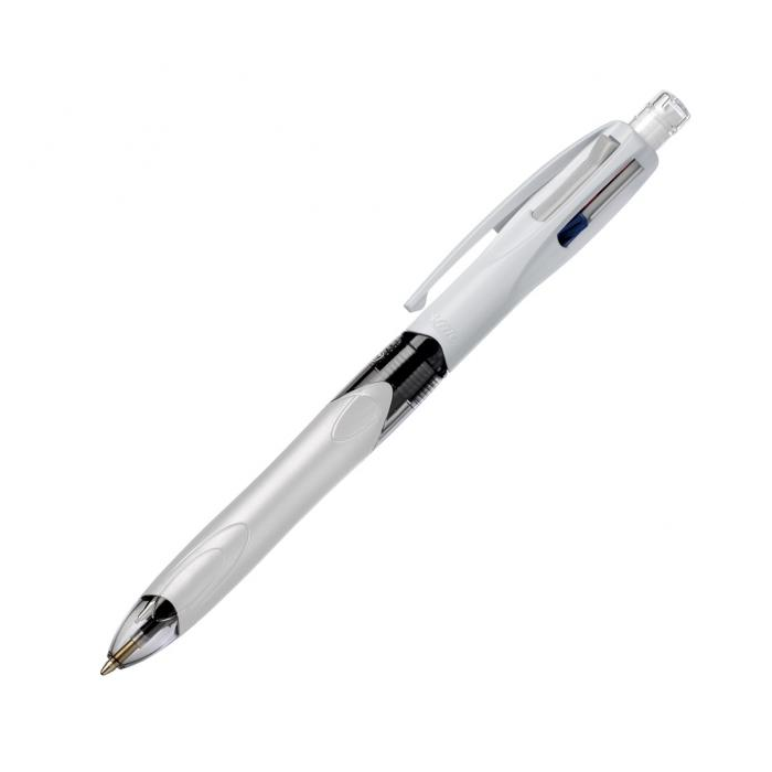 Klikacie pero s 3 vymieňateľnými náplňami v základných farbách (čierna, modrá, červená) so stredným hrotom hrúbky 1 mm so šírkou stopy 0,4 mm a s mechanickou ceruzkou s vymieňateľnou tuhou hrúbky HB 0,7 mm. Komfortný úchyt, guma chránená ochraným krytom. Väčšie balenie 12 ks.