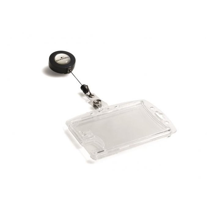 Visačka na karty v uzavretom prevedení na 2 ID karty/bezpečnostné preukazy. Krištáľovo čistý materiál pre optimálnu čitateľnosť a jednoduché skenovanie čiarových kódov. S otvorom pre palec pre ľahké vybratie karty. Možno kombinovať s retiazkou, navíjacou menovkou alebo textilnou šnúrkou na zavesenie. Držiak karty je možné použiť vo formáte na výšku alebo na šírku. Vnútorné rozmery: 54 x 87 mm (V x Š).