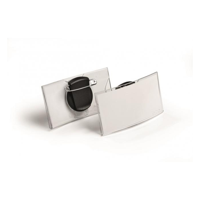 Elegantná visačka z pevného plastu s lesklým povrchom a vertikálnym zaoblením. Oblý tvar spoľahlivo zabráni vypadnutiu menovky a zlepšuje výhľad na menovku. Uchytenie visačky na zadnej strane širokým pevným štipcom alebo zatváracím špendlíkom. Náhradné papieriky obj. kód DU145302. Balenie 25 ks.