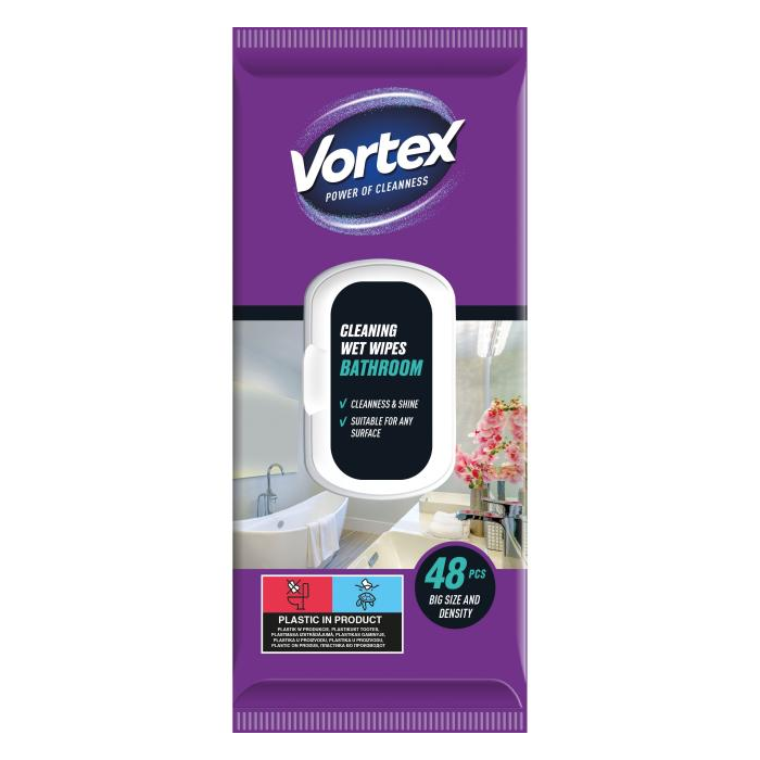 Vlhčené utierky VORTEX do kúpeľne, 48 ks