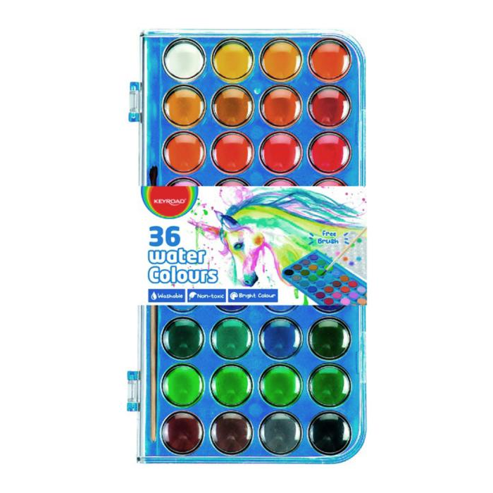 Vodové farby KEYROAD so štetcom, 36 farieb