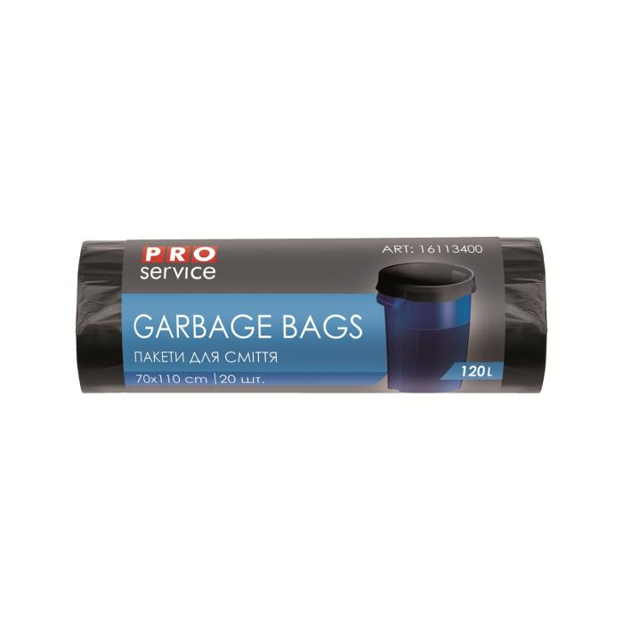 Vrecia na odpad Pro Service 120 l, 20ks na rolke, rozmer 70 x 110cm, čierne, 21 mikrónov, materiál LDPE.