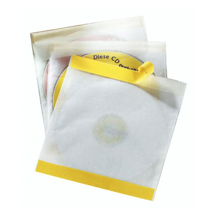 Lepiace vrecká s klopou a vnútornou ochrannou vrstvou chrániacou 2 CD/-DVD alebo 1 CD/-DVD s brožúrkou pred poškriabaním, prachom a nečistotou. Môžu byť nalepené prakticky na akýkoľvek povrch. Rozmery 127 x 127 mm.