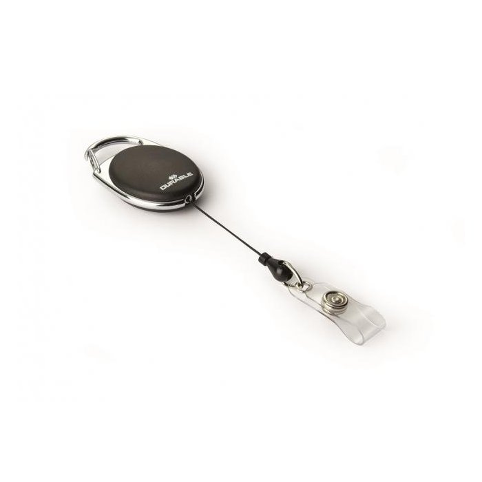 Štýlový oválny vysúvací kotúč s možnosťou vysunutia do 80 cm a kovovým klipom na rubovej strane. Vhodný na uchytenie všetkých visačiek značky DURABLE s perforáciou. Balenie 10 ks.