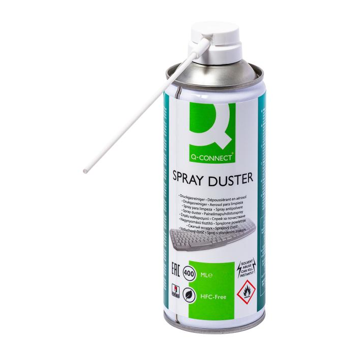 Vzduchový tlakový čistič na odstránenie prachu a nečistoty z ťažko prístupných miest, napr. klávesníc, tlačiarní a pod. Neobsahuje HFC. Tento chemický prípravok je nebezpečný a horľavý. Objem 400 ml.