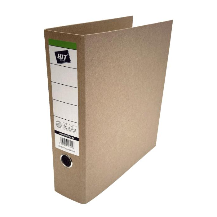 Zakladač z materiálu KRAFT s pákovou mechanikou a chrbtom 8 cm. Zakladač obsahuje štítok a EAN kód na chrbte poradača. Vyrobené z FSC® certifikovaného materiálu.