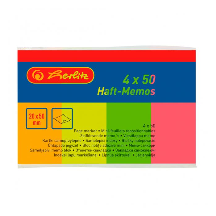 Záložky Herlitz papierové 20x50mm 50 ks 4 farby