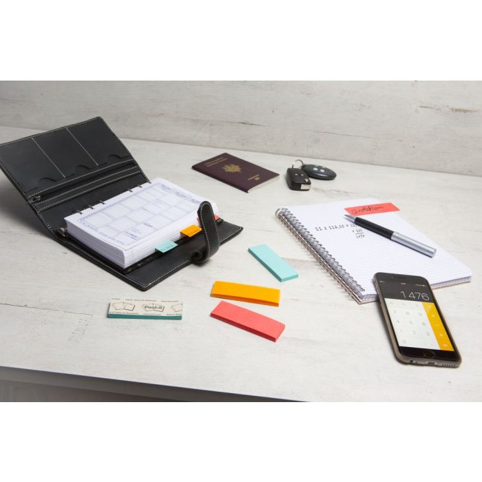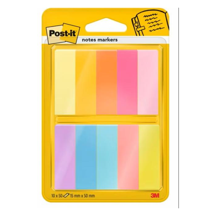 Viacnásobne prelepiteľné papierové záložky Post‑it®. Ideálne na označovanie strán. Po odlepení nezanechávajú zvyšky lepidla. Rozmery 12,7 × 44,4 mm. V balení 10 farieb po 50 lístkov.