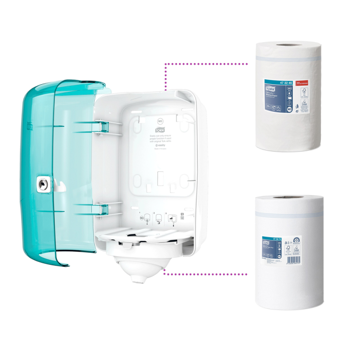 Tork® Reflex™ mini zásobník na jednotlivo dávkované utierky so stredovým odvíjaním je ideálny pre tých, ktorí hľadajú riešenie na utieranie rúk aj povrchov. Vďaka jeho tvaru, ktorý šetrí priestor, a otočnému dávkovaču je vhodný do profesionálneho prostredia akejkoľvek veľkosti. Tento systém umožňuje dávkovanie po jednom útržku, čím reguluje spotrebu až o 37 % lepšie v porovnaní so systémom Tork® so stredovým odvíjaním.