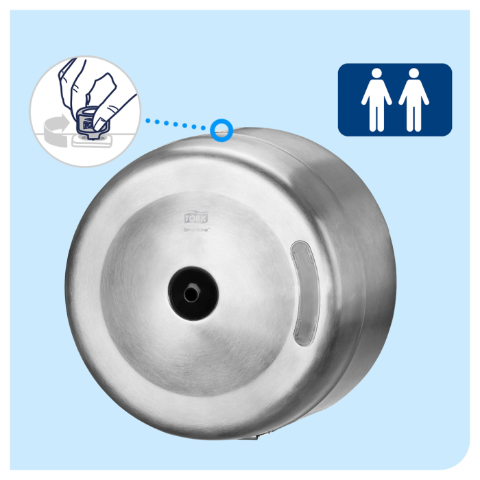 Tork SmartOne zásobník na toaletný papier v kotúčoch je účinný a veľmi robustný dávkovací systém vhodný pre náročné toalety a umyvárne s vysokou návštevnosťou. Dávkovanie po útržkoch pomáha znižovať spotrebu až o 40 % v porovnaní s tradičnými jumbo kotúčovými zásobníkmi, čo znamená viac návštev na jeden kotúč.