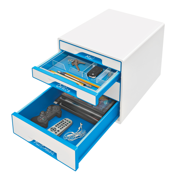 Zásuvkový box Leitz WOW so 4 zásuvkami modrý