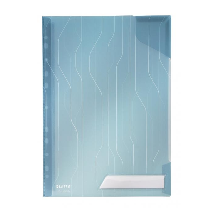 Unikátny závesný obal typu `L`, ktorý kombinuje vlastnosti euroobalov a obalov vďaka patentovanej skrývateľnej multiperforácii do špeciálneho puzdra. Obsahuje rohovú chlopňu, ktorá chráni vložený dokument a vrecko na popis obsahu s vymeniteľným štítkom. Vyrobený z kvalitného priehľadného PP s embosovaným vzorom. Hrúbka 200 um. Kapacita 40 listov papiera formátu A4. Balenie 5 ks.