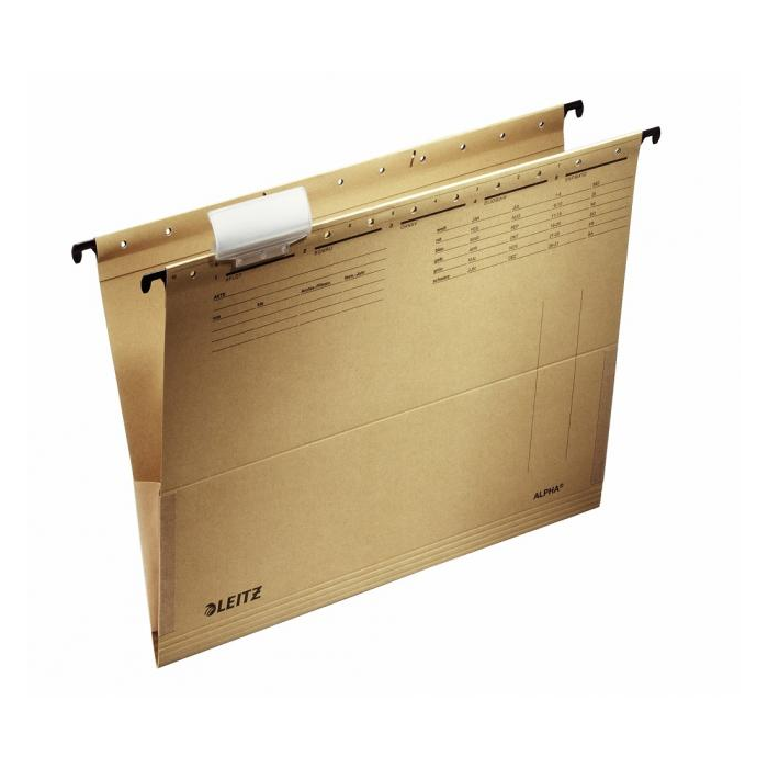 Obal vhodný na zakladanie voľných listov do formátu A4 s otvormi po stranách na upevnenie úchytiek do rýchloviazačových (nie sú súčasťou). Plátené bočnice zabraňujú vypadnutiu dokumentov z obalov. Súčasťou obalu je plastový index s vymeniteľným papierovým štítkom. Väčšie balenie 25 ks. Farba: hnedá