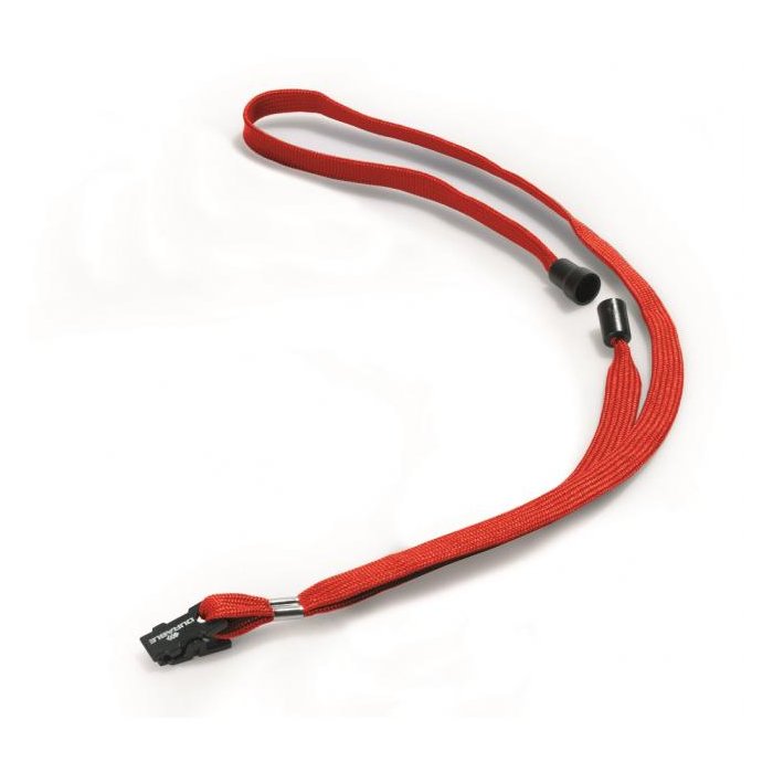 Remienok s bezpečnostnou poistkou. Poistka sa uvoľní pri zachytení remienka alebo silnom potiahnutí. Vhodný ku všetkým visačkám značky Durable. Dĺžka 44 cm, šírka 10 mm. Balenie 10 ks.