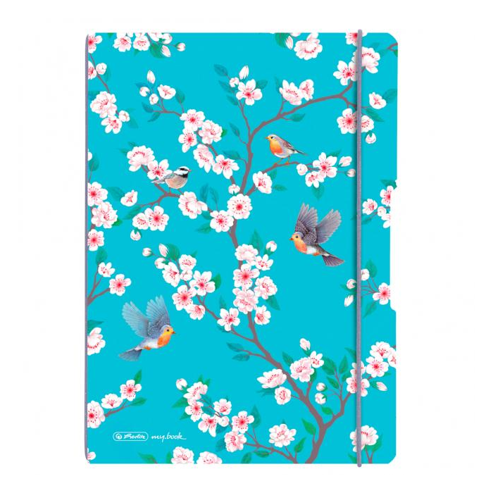 Zošit my.book flex Ladylike Vtáky, zaoblené rohy, so sivou gumičkou na zatváranie. 40 listov linajky, 40 listov štvorčeky.